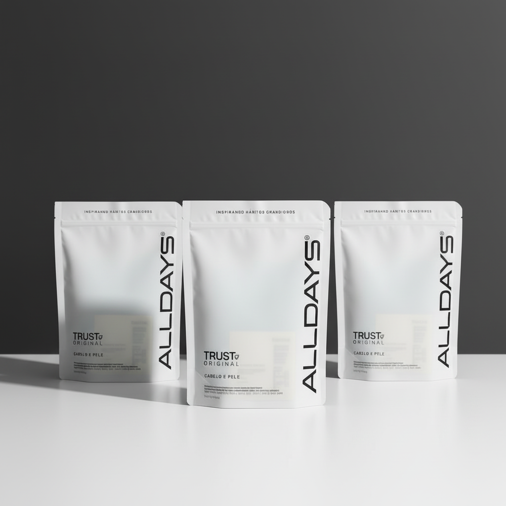 Trust Original 90D é o suplemento de alta performance da Alldays para redução da queda e fortalecimento capilar profundo.